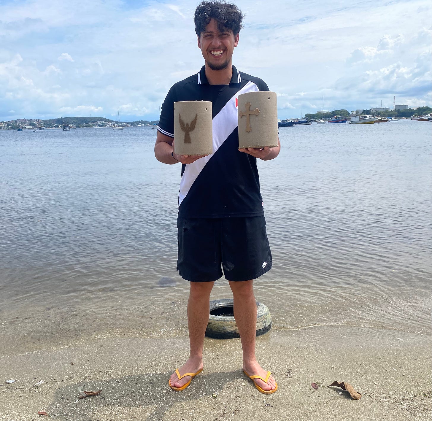 when it was over I took both the lidless urns out deep into the water, filled them up, pressed them into the soft sand. . . I looked to check if the sanitation worker was still peering, but he was long-gone, caught up in his own disposals. . .
